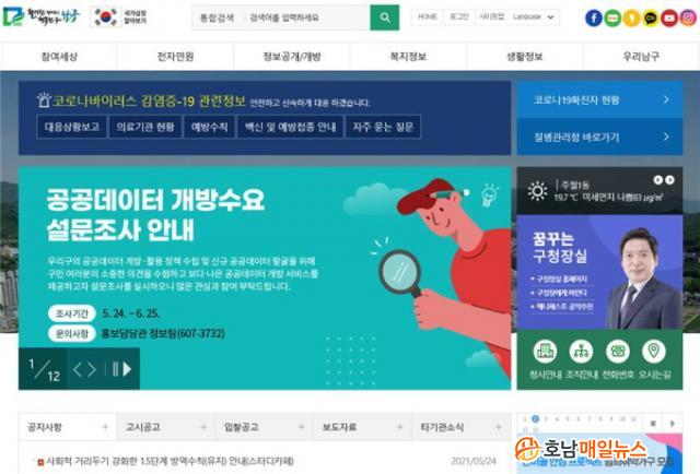 ÇöÀç ³²±¸Ã»Àº ȨÆäÀÌÁö(www.namgu.gwangju.kr) Á¤º¸°ø°³ Äڳʸ¦ ÅëÇØ ÁÖÂ÷Àå Á¤º¸¸¦ ºñ·ÔÇØ º´¿ø‧¿ä¾ç¿ø ÇöȲ, ž籤 ¹ßÀü¼Ò ¼³Ä¡ ÇöȲ, Àü±¹ ¿©¼º¾È½É ÅùèÇÔ Ç¥Áص¥ÀÌÅÍ, Àü±¹ ½º¸¶Æ® °¡·Îµî Ç¥ÁØ µ¥ÀÌÅÍ µî 49Á¾ÀÇ °ø°øµ¥ÀÌÅ͸¦ Á¦°øÇϰí ÀÖ´Ù.