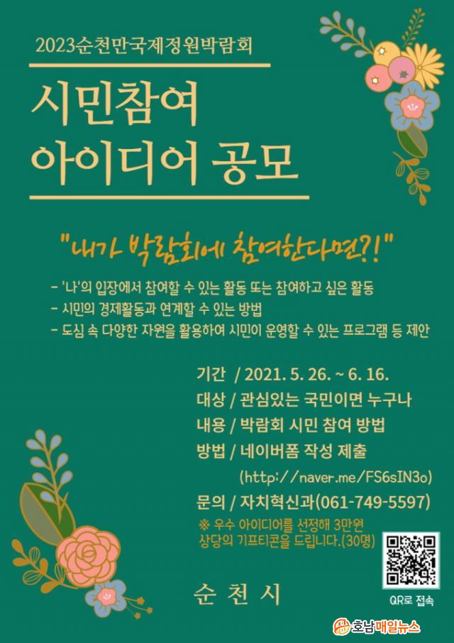 ÇÑÆí, ¼øÃµ½Ã °ü°èÀÚ´Â ¡°2023¼øÃµ¸¸±¹Á¦Á¤¿ø¹Ú¶÷ȸ´Â 2013³â ¹Ú¶÷ȸ¿Í´Â ´Ù¸£°Ô µµ½É Àü¿ªÀ» ´ë»óÀ¸·Î, Àü ½Ã¹ÎÀÌ Âü¿©ÇÏ´Â ¹Ú¶÷ȸ¸¦ ¸ñÇ¥·Î ÇÏ´Â ¸¸Å ½Ã¹ÎÀÇ Âü¿©¿Í °ü½ÉÀº ¹Ú¶÷ȸ ¼º°ø°³ÃÖÀÇ °¡Àå Å« µ¿·ÂÀÌ µÈ´Ù.¡±¸é¼ ¡°À̹ø °ø¸ð¸¦ ÅëÇØ ¹ß±¼ÇÑ ¾ÆÀ̵ð¾î¸¦ ¹Ø°Å¸§ »ï¾Æ ¿¬°ü ºÎ¼¿Í Çù¾÷ü°è¸¦ ±¸ÃàÇϰí, Áö±ÝºÎÅÍ Â÷±ÙÂ÷±Ù ±â¹ÝÀ» ¸¸µé¾î³ª°¥ ¿¹Á¤ÀÌ´Ù.¡±°í ¸»Çß´Ù.