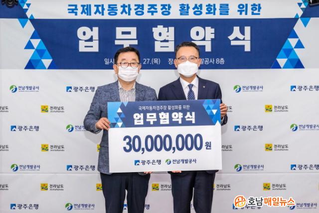 À̹ø ¾÷¹«Çù¾àÀ» ÅëÇØ ±¤ÁÖÀºÇàÀº ±¹Á¦ÀÚµ¿Â÷°æÁÖÀåÀÇ ¹ßÀüÀ» À§ÇØ 3õ¸¸¿øÀ» ÈÄ¿øÇßÀ¸¸ç, Àü³²°³¹ß°ø»ç¿Í ÇÔ²² ±¹³» ¸ðÅͽºÆ÷Ã÷ Àúº¯ È®´ë¿Í °æÁÖÀå Ȱ¼ºÈ, Áö¿ª ¹ßÀüÀ» À§ÇØ »óÈ£ ´Ù¾çÇÑ ¿¬°è ¹× ¹ßÀü¿¡ Çù·ÂÇϱâ·Î Çß´Ù.