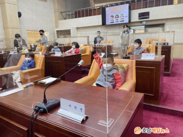 º»È¸ÀÇÀåÀ» ¹æ¹®ÇÑ ¾î¸°À̵éÀº ȸÀÇÀå¿¡ ¼³Ä¡µÈ °¢Á¾ ȸÀǽü³À» µ¹¾Æº¸°í ³î¶ó¿öÇßÀ¸¸ç ÀÇ¿ø Á¼®¿¡ ¾É°Å³ª ÀÇÀå¼®¿¡¼ ÀÇ»çºÀ 3Ÿ üÇèÀ» ÇÏ°í ½Å±âÇÑ Ç¥Á¤À» °¨ÃßÁö ¸øÇß´Ù.