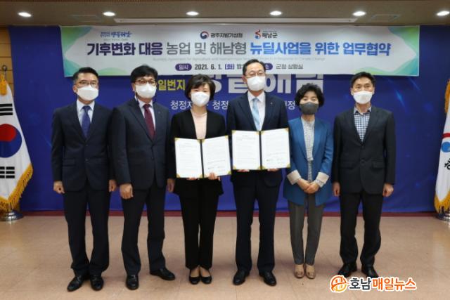 ÇØ³²±ºÃ» »óȲ½Ç¿¡¼ ÁøÇàµÈ Çù¾à½Ä¿¡´Â ¸íÇö°ü ÇØ³²±º¼ö¿Í ±è±Ý¶õ ±¤ÁÖÁö¹æ±â»óûÀåÀÌ Âü¼®ÇÑ °¡¿îµ¥ ±âÈÄÀ§±â »óȲ¿¡ ´ëÀÀÇÏ´Â ÁöÀÚüÀÇ ¿ª·®À» °ÈÇϰí, ÇØ³²Çü ±×¸°´ºµô »ç¾÷ ÃßÁøÀ» À§ÇÑ ÇùÁ¶Ã¼°è¸¦ ±¸ÃàÇϱâ·Î Çß´Ù.