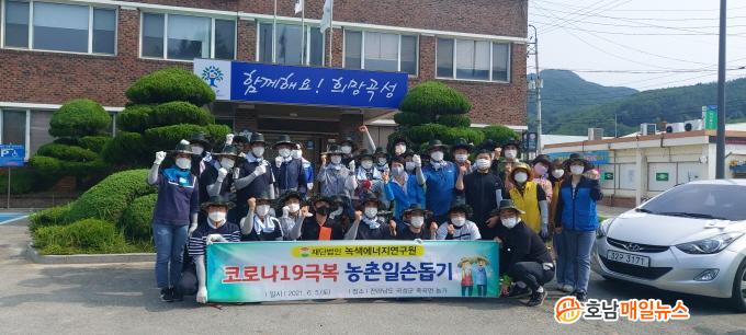 À̸¥ ¾ÆÄ§ºÎÅÍ ½ÃÀÛµÈ ÀÚ¿øºÀ»ç Ȱµ¿¿¡´Â ³ì»ö¿¡³ÊÁö¿¬±¸¿ø ÀÚ¿øºÀ»çÀÚ 38¸íÀÌ Âü°¡Çß´Ù. Àü¶ó³²µµÀÚ¿øºÀ»ç¼¾ÅÍÀåÀ» ºñ·ÔÇÑ Âü¿© Á÷¿øµéÀº Á÷Á¢ ³ó°¡¸¦ ¹æ¹®ÇØ ÀϼÕÀ» µµ¿ì¸ç ±¸½½¶¡À» Èê·È´Ù.