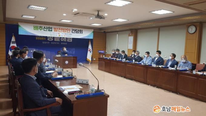¹Ú¿µ¹ü ³ó¸²Ãà»ê½ÄǰºÎ Â÷°ü°ú ÁöÀÚü °ü°èÀÚ, Áö¿ª³óÇù, ³ó¾÷ÀÎ µî 20¿©¸íÀÌ Âü¼®ÇÑ °¡¿îµ¥ ¿¸° °£´ãȸ¿¡¼´Â ¹èÃß »ê¾÷ ¹ßÀüÀ» À§ÇÑ ÁÖ»êÁö ÀÇ°ß ¼ö·ÅÀ» ¸ñÀûÀ¸·Î ¸¶·ÃµÆ´Ù.