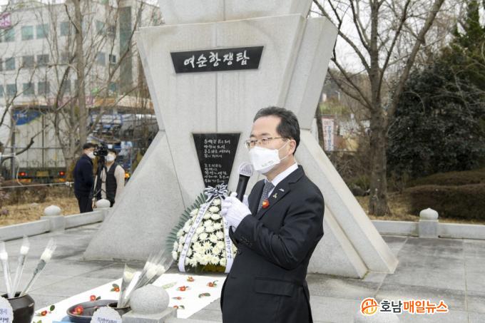 Çã¼® ¼øÃµ½ÃÀåÀº ¡°¿©¾ß ÇÕÀÇ¿¡ ÀÇÇØ ÀÌ·ïÁø ¿©¼ø10¡¤19Ưº°¹ý Çà¾ÈÀ§ Åë°ú´Â Å« Àǹ̰¡ ÀÖ´Â ¿ª»çÀûÀÎ ³¯ÀÌ´Ù. ¿©¼ø10¡¤19»ç°Ç ÇÇÇØÀ¯°¡Á·ÀÇ ¾ÆÇÄÀ» Ä¡À¯Çϰí Áö¿ªÀÇ ¿ª»çÀû Áø½ÇÀ» µÇã´Â Ãâ¹ßÁ¡¿¡ ¼°Ô µÇ¾ú´Ù¸ç, ¿©¼ø10¡¤19»ç°ÇÀÌ ¿Ã¹Ù¸¥ ¿ª»ç·Î ±â·ÏµÇ´Âµ¥ ¼øÃµ½Ã°¡ À¯°¡Á·°ú ¿©¼ø10¡¤19¹Î°üÇùÀÇȸ¿Í ÇÔ²² Áø»ó±Ô¸í ¹× Èñ»ýÀÚ ¸í¿¹È¸º¹ µîÀÇ ¾÷¹«¼öÇà¿¡ ÃÖ¼±À» ´ÙÇϰڴÙ.¡±°í ÀüÇß´Ù.