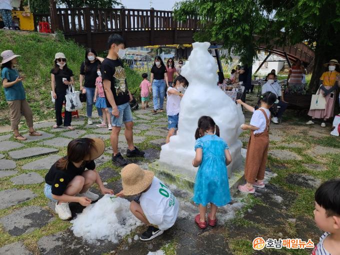 ´« Á¶°¢ÀüÀº 11½Ã¡16½Ã±îÁö ÁøÇàµÇ¸ç µ¿½ÉÀ» À¯¹ßÇÏ°í ´õÀ§¸¦ ÀÌ±æ ¼ö ÀÖ´Â °¡Á· üÇèÇü ÆÛÆ÷¸Õ½º ÇÁ·Î±×·¥À¸·Î ÁøÇàµÈ´Ù. ÇöÀå Âü¿©´Â ºÒ°¡´ÉÇÏ¸ç ¹Ì¸® ¼±¹ßµÈ °¡Á·µéÀÌ ÀÛ°¡µéÀÇ µµ¿òÀ» ¹Þ¾Æ ´« ºí·°¿¡ Á÷Á¢ Á¶°¢À» Çϰí, ´«¾Ë¸ÍÀ̸¦ ¸¸Áö¸ç ³î ¼ö ÀÖ´Ù.