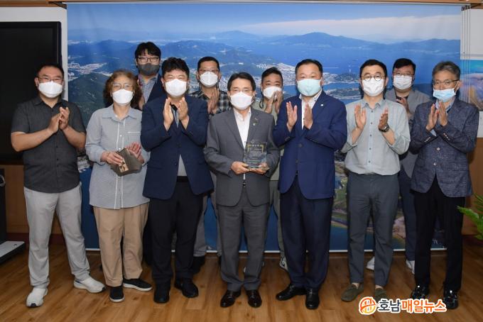 ÇÑÆí, ¿©¼ö½Ã ¹ýÀÎÅýÃÇùÀÇȸ¿¡¼´Â ¿µ»ó±â·ÏÀåÄ¡ ±³Ã¼»ç¾÷ »Ó¸¸ ¾Æ´Ï¶ó ¿î¼öÁ¾»çÀÚ ±ä±ÞÀç³Áö¿ø±Ý µî ½Ã¿¡¼ ÀçÁ¤Àû Áö¿øÀ» ÇØÁØ µ¥ ´ëÇÑ °¨»çÀÇ Àǹ̷Π18ÀÏ ½ÃÀå½ÇÀ» ã¾Æ ±Ç¿ÀºÀ ¿©¼ö½ÃÀå¿¡°Ô °¨»çÆÐ¸¦ Àü´ÞÇß´Ù.
