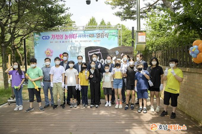 Çã¼® ¼øÃµ½ÃÀåÀº ¡°Á¦7È£ ±âÀûÀÇ ³îÀÌÅ͸¦ Á¶¼ºÇϱâ±îÁö ¸¹Àº ºÐµéÀÇ ³ë°í°¡ ÀÖ¾úÁö¸¸ ³îÀÌÅ͸¦ Á÷Á¢ µðÀÚÀÎÇϰí À̸§À» Áþ°í ³îÀÌÅÍ °³¼±¿¡ Âü¿©ÇØÁØ ¾î¸°À̵鿡°Ô °¨»çµå¸®¸ç, ³îÀÌÅÍÀÇ À̸§Ã³·³ Ä£±¸, °¡Á·µé°ú ÇູÀÇ ¿ôÀ½²ÉÀ¸·Î ºÏÀû°Å¸®´Â °ø°£ÀÌ µÇ±â¸¦ ¹Ù¶õ´Ù.¡±¶ó°í ¸»Çß´Ù.