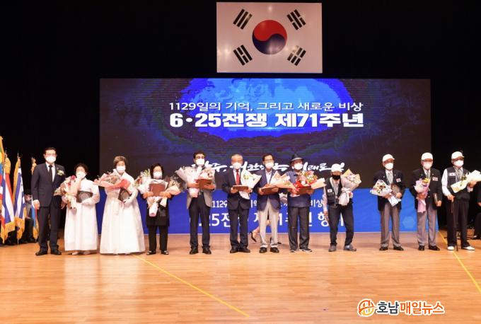 ƯÈ÷, À̳¯ ±â³ä½Ä¿¡¼´Â 1952³â 10¿ù °¿øµµ öÀÇ »ï°¢Áö´ë ±ÝÈÁö±¸ ÀüÅõ¿¡¼ ¹ß±ºÀÇ ¹«°øÀ¸·Î 1953³â 9¿ù ¼ÈÆ °áÁ¤µÆ´ø ±¤ÁÖÃâ½Å ÀüÀï À¯°øÀÚ Íº ±èÀÏ¿µ ÁßÀ§(À°±º ¼öµµ»ç´Ü)¿¡ ´ëÇÑ ±Ý¼ºÃ湫¹«°øÈÆÀåÀ» À̿뼷 ½ÃÀåÀÌ 68³â ¸¸¿¡ À¯Á·ÀÎ Àå³² ±è±Õ¼ö(65) ¾¾¿¡°Ô Àü¼öÇß´Ù.