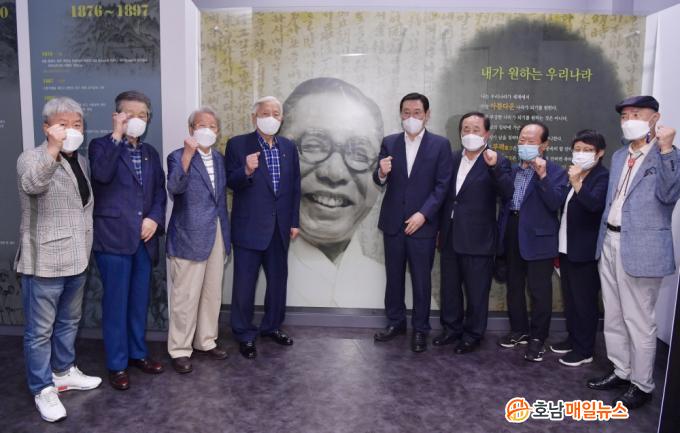 ±¤ÁÖ¹é¹ü±â³ä°üÀº 1946³â ¹é¹ü ±è±¸¼±»ýÀÌ ±¤Áֹ湮 Áß ±¤º¹ ÈÄ ±Í±¹ÇÑ µ¿Æ÷µéÀÌ ±¤ÁÖõº¯¿¡ õ¸·À» Ä¡°í »ýȰÇÏ´Â ¸ð½ÀÀ» º¸°í ±âÁõÇÑ ÈÄ¿ø±ÝÀ¸·Î Á¶¼ºµÈ ¸¶À»¿¡ À§Ä¡ÇØ Çß´Ù.