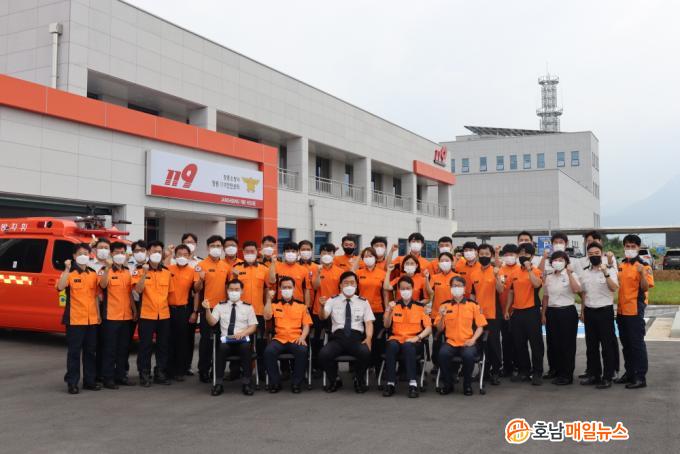 ÀÌ¾î ¼Ò¹æ¼ÀÇ Çö¾È¾÷¹« µîÀ» º¸°í ¹Þ°í ÇöÀå¿¡¼ ¶¡ È긮´Â 119¾ÈÀü¼¾ÅÍ, ±¸Á¶´ë Á÷¿øµéÀÇ ¾Ö·Î»çÇ× Ã»ÃëÇÏ°í °Ý·ÁÇß´Ù.
