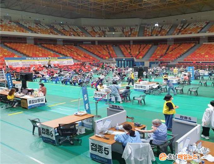 ¼±¸´Â Áö³ 3°³¿ù°£ 75¼¼ÀÌ»ó ¾î¸£½Å ¹× ³ëÀνü³ 15,921¸íÀ» ´ë»óÀ¸·Î Á¢Á¾À» ½Ç½ÃÇÏ¿© ÀÌÁß 1Â÷ Á¢Á¾ ¿Ï·áÀÚ´Â 15,566¸í(97.8%), 2Â÷ Á¢Á¾ ¿Ï·áÀÚ´Â 15,330¸í(96.3%)ÀÌ´Ù.