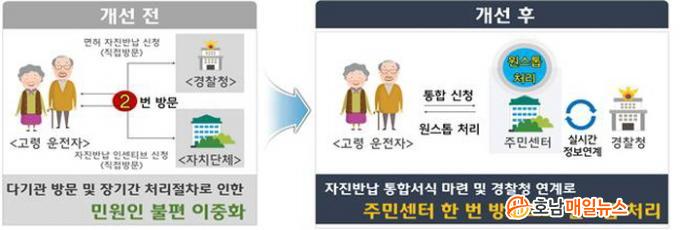 ±¤ÁÖ±¤¿ª½Ã´Â 70¼¼ ÀÌ»ó °í·É ¿îÀüÀÚÀÇ ¿îÀü¸éÇãÁõ ÀÚÁø ¹Ý³³°ú ±³ÅëÄ«µå Áö¿ø ½ÅûÀ» ÀÚÄ¡±¸ µ¿ ÇàÁ¤º¹Áö¼¾ÅÍ¿¡¼ Àϰýó¸®(¿ø½ºÅé)ÇÏ´Â ¡®°í·ÉÀÚ ¿îÀü¸éÇãÁõ ÀÚÁø¹Ý³³ °£¼ÒÈ ¼ºñ½º¡¯¸¦ 13ÀϺÎÅÍ ½ÃÇàÇÑ´Ù°í ¹àÇû´Ù.