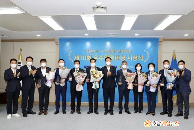 Àü¶ó³²µµÀÇȸ´Â 6ÀÏ µµÀÇȸ ȸÀǽǿ¡¼ Á¦10ȸ ¿ì¼öÀÇÁ¤´ë»ó ½Ã»ó½ÄÀ» °®°í °ûżö, ±èº¹½Ç, ±èÁ¤Èñ, ¹®ÇàÁÖ, »ç¼ø¹®, ½Å¹ÎÈ£, Á¶±¤¿µ, ÃÖ¼±±¹, ÃÖÇöÁÖ, Çѱټ®(°¡³ª´Ù ¼ø) ÀÇ¿ø¿¡°Ô ¿ì¼öÀÇÁ¤´ë»óÀ» ¼ö¿©Çß´Ù.