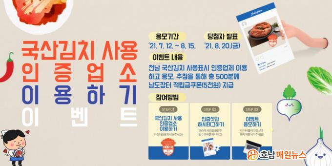 ¡®±¹»ê±èÄ¡ »ç¿ë ÀÎÁõ¾÷ü Ç¥½ÃÁ¦¡¯´Â 100% ±¹»ê Àç·á·Î ¸¸µç ±èÄ¡¸¦ »ý»ê¾÷ü·ÎºÎÅÍ °ø±Þ¹Þ°Å³ª, Á÷Á¢ ¸¸µé¾î »ç¿ëÇÏ´Â À½½ÄÁ¡, Çб³ µîÀ» ÀÎÁõÇÏ´Â Á¦µµ´Ù. Àü³²µµ°¡ ±¹»ê±èÄ¡ÀÚÀ²Ç¥½ÃÀ§¿øÈ¸¿Í ÇÔ²² °øµ¿ ÃßÁøÇϰí ÀÖ´Ù.