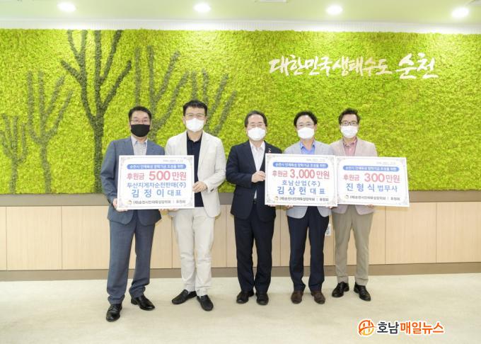 À̳¯ Àü´Þ½Ä¿¡¼ È£³²»ê¾÷¢ß(´ëÇ¥ ±è»óÇå) 3õ¸¸¿ø, µÎ»êÁö°ÔÂ÷¼øÃµÆÇ¸Å¢ß(´ëÇ¥ ±èÁ¤ÀÌ) 5¹é¸¸¿ø, ÁøÇü½Ä ¹ý¹«»ç 3¹é¸¸¿ø, ÃÑ 3õ8¹é¸¸¿øÀÇ ÈÄ¿ø±ÝÀ» ¼øÃµ½ÃÀÎÀçÀ°¼ºÀåÇÐȸ¿¡ Àü´ÞÇß´Ù.