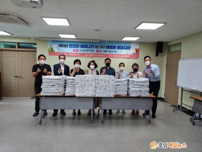 À̹ø Çà»ç´Â ÃæÀ嵿 Áö¿ª»çȸº¸ÀåÇùÀÇü(À§¿øÀå ÃÖ±¤¹ü), ÅëÀå´ÜÇùÀÇȸ, »õ¸¶À»ºÎ³àȸ µî °ü³» ÀÚ»ý´ÜüÀÇ Áö¿øÀ¸·Î ¿©¸§ÀÌºÒ µî ¿©¸§¿ë ¹°Ç°À» Àü´ÞÇÏ´Â ÀÚ¸®¸¦ ¸¶·ÃÇß´Ù.