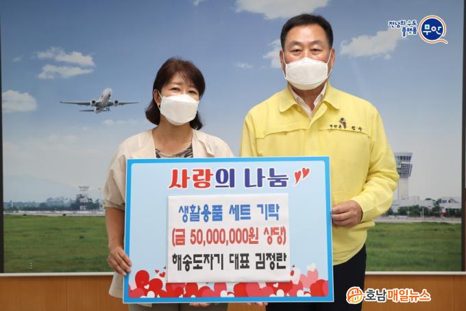 ÇÑÆí, ¹«¾È±ºÀº ±âŹ ¹ÞÀº ÈÄ¿ø¹°Ç°À» Àü³²»çȸº¹Áö°øµ¿¸ð±Ýȸ¸¦ ÅëÇØ °ü³» »çȸº¹Áö½Ã¼³°ú Àú¼ÒµæÃþ ´ë»óÀڵ鿡°Ô Àü´ÞÇÒ ¿¹Á¤ÀÌ´Ù.