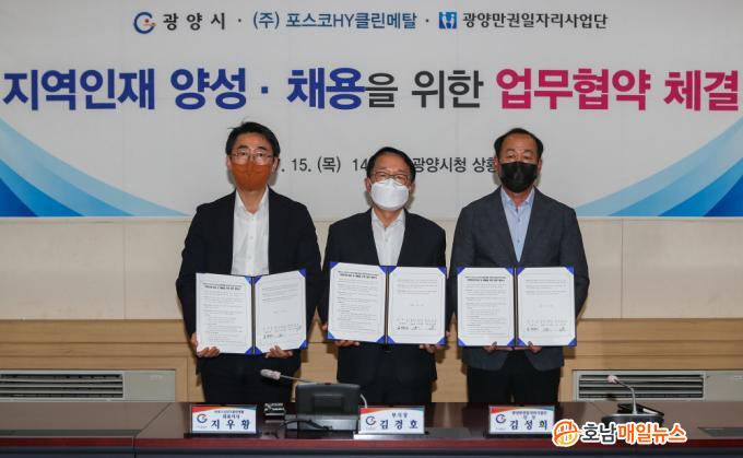 À̳¯ Çù¾à½Ä¿¡´Â ±è°æÈ£ ºÎ½ÃÀå°ú Áö¿ìȲ ¢ßÆ÷½ºÄÚHYŬ¸°¸ÞÅ» ´ëÇ¥ÀÌ»ç, ±è¼ºÈñ ±¤¾ç¸¸±ÇÀÏÀÚ¸®»ç¾÷´ÜÀå µîÀÌ Âü¼®ÇÑ °¡¿îµ¥ Àü±âÂ÷ ¼ÒÀç °ü·Ã ±â¾÷ÀÇ ±¸ÀγÀ» ÇØ¼ÒÇÏ°í ¾çÁúÀÇ Ã»³âÀÏÀÚ¸®¸¦ âÃâÇÏ´Â µ¥ ¶æÀ» ¸ðÀ¸±â·Î Çß´Ù.