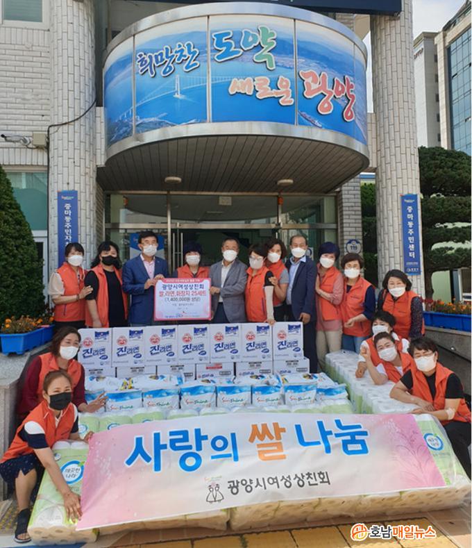 ¿©¼º»ó°øÀÎ 27¸íÀ¸·Î ±¸¼ºµÈ ±¤¾ç½Ã¿©¼º»óģȸ´Â Áö¿ª»çȸ ³ª´®À» ½ÇõÇϰíÀÚ È¸¿øµéÀÌ ¸Å¿ù 1¸¸ ¿ø¾¿ ȸºñ¸¦ Àû¸³ÇØ ÇØ´ç ÈÄ¿ø¹°Ç°À» ¸¶·ÃÇß´Ù.
