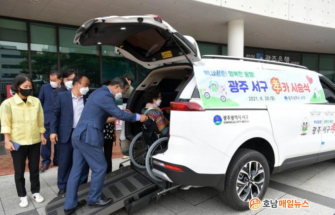 ¼±¸´Â ÀÌ È¿Ä« »ç¾÷À» À§ÇØ ÁßÇü½ÂÇÕÂ÷ 2´ë¸¦ ±¸ÀÔÇÏ¿© ½½·ÎÇÁ Àå¾ÖÀÎÂ÷·Î °³Á¶ÇÏ°í ¸¸ 65¼¼ ÀÌ»ó ŸÀÎÀÇ µµ¿ò ¾øÀÌ´Â À̵¿ÀÌ ºÒÆíÇÑ ¾î¸£½ÅÀ» ´ë»óÀ¸·Î °øÀ¯ ÁßÀÌ´Ù.