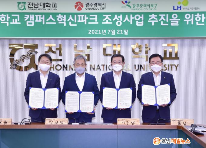 ±¤ÁÖ½Ã¿Í Àü³²´ë, ºÏ±¸, Çѱ¹ÅäÁöÁÖÅðø»ç´Â 21ÀÏ ¿ÀÀü Àü³²´ë ´ëÇк»ºÎ ´ëȸÀǽǿ¡¼ À̿뼷 ½ÃÀå°ú Á¤¼ºÅà ÃÑÀå, ¹®ÀΠûÀå, ±èÇöÁØ »çÀåÀÌ Âü¼®ÇÑ °¡¿îµ¥ Àü³²´ë Ä·ÆÛ½ºÇõ½ÅÆÄÅ© Á¶¼º»ç¾÷ ÃßÁøÀ» À§ÇÑ ±âº»Çù¾àÀ» ü°áÇß´Ù.
