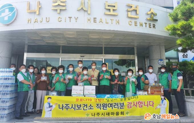 »õ¸¶À»È¸¸¦ ºñ·ÔÇØ »õ¸¶À»ÁöµµÀÚ³ªÁÖ½ÃÇùÀÇȸ(ȸÀå ÀÌ»óÇÊ), »õ¸¶À»ºÎ³àȸ(ȸÀå ±è¼ø·Ê) ȸ¿øµéÀº À̳¯ ¼ö¹Ú¡¤¶±¡¤°úÀÏ¡¤À½·á¡¤°úÀÚ µî °£½Ä ²Ù·¯¹Ì 150¿©°³¿Í »ý¼ö 1000º´À» Àü´ÞÇÏ¸ç ¹«´õÀ§¿¡ ÁöÄ£ Á÷¿øµéÀ» À§·ÎÇß´Ù.