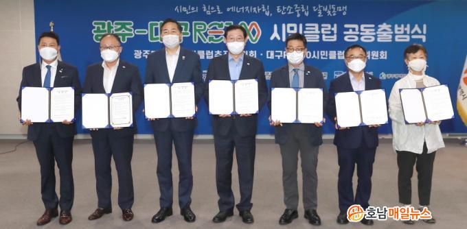 ±¤ÁÖ¿Í ´ë±¸ RE100½Ã¹ÎŬ·´ÃßÁøÀ§¿øÈ¸°¡ °øµ¿ ÁÖÃÖÇÑ Ãâ¹ü½ÄÀº Äڷγª19 »óȲÀ» °¨¾ÈÇØ ¾ç ½Ã¿¡¼ À̿뼷 ±¤ÁÖ½ÃÀå, ±Ç¿µÁø ´ë±¸½ÃÀå, ½ÃÀÇȸ, ½Ã±³À°Ã» µî °ø°ø±â°ü °ü°èÀÚ¿Í Áö¼Ó°¡´ÉÇùÀÇȸ, Áö¿ª¹®Á¦Çذá Ç÷§Æû, Áö¿ª¿¡³ÊÁöÀüȯ³×Æ®¿öÅ© µî ´ëÇ¥¿Í ½Ã¹ÎµéÀÌ Âü¼®ÇÑ °¡¿îµ¥ ½Ç½Ã°£ ÀÌ¿ø »ýÁß°è ¹æ½ÄÀ¸·Î °³ÃֵƴÙ.