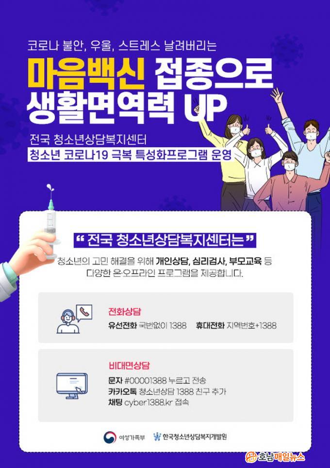 ÀÌ¿¡ û¼Ò³â»ó´ãº¹Áö¼¾ÅÍ´Â Äڷγª19·Î ÀÎÇÑ ºÒ¾È¡¤¿ì¿ï, °¡Á·, ´ëÀΰü°è, Áø·Î µîÀÇ ¾î·Á¿òÀ» È£¼ÒÇϴ û¼Ò³âÀ» ´ë»óÀ¸·Î ¹®Á¦ÇØ°á ¹× ¿ì¿ïÁõ ¿¹¹æÀ» À§ÇÑ °³ÀΡ¤Áý´Ü»ó´ã ÇÁ·Î±×·¥À» ÁøÇàÇÑ´Ù. ¶Ç, °¡Á·°ü°è ÁõÁø ¹× ÀÚ³à Áöµµ¸¦ À§ÇÑ ºÎ¸ð±³À°, ½É¸®°Ë»ç µî ´Ù¾çÇÑ ¿Â¡¤¿ÀÇÁ¶óÀÎ »ó´ã ¼ºñ½ºµµ ÇÔ²² Á¦°øÇÑ´Ù°í ¹àÇû´Ù.