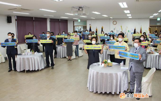 ³ªÁֽà ¿©¼º´ÜüÇùÀÇȸ(ȸÀå °¿¬¼÷)¿¡¼ ÁÖ°üÇÑ ¾ç¼ºÆòµîÁÖ°£ ±â³äÇà»ç´Â ¾ç¼ºÆòµî ¹®È È®»ê¿¡ Èû¾´ °ø·ÎÀÚ¿¡°Ô À¯°øÇ¥Ã¢ ½Ã»ó°ú ´õºÒ¾î ÃàÇÏ ¸Þ½ÃÁö¸¦ Àü´ÞÇϸç ÁøÇàµÇ¾ú°í, Äڷγª19 È®»ê ¹æÁö¸¦ À§ÇØ Âü¿©ÀοøÀ» ÃÖ¼ÒÈ ÇÏ¿© °ü³» 21°³ ¿©¼º´Üü ´ëÇ¥ µî 30¿©¸íÀÌ Âü¼®Çß´Ù.