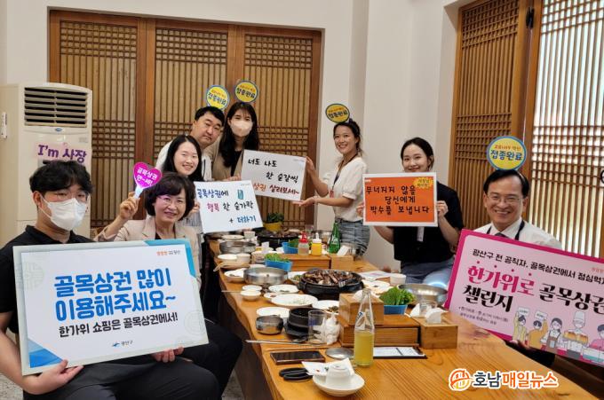±è»ïÈ£ ±¤»ê±¸Ã»ÀåÀ» ºñ·ÔÇÑ ±¤»ê±¸ °øÁ÷ÀÚ 1000¿© ¸íÀº ±Ç¿ªº° °ñ¸ñ»ó±ÇÀ» ¹æ¹®ÇØ Á¡½ÉÀ» ¸Ô°Å³ª Ä¿ÇǼóÀ» ÀÌ¿ëÇÏ´Â µîÀÇ ¹æ½ÄÀ¸·Î 縰Áö µ¿Âü¿¡ ³ª¼¹´Ù. »çȸÀû °Å¸®µÎ±â ¹æ¿ª¼öÄ¢À» öÀúÈ÷ ÁؼöÇÑ °¡¿îµ¥, »óÀεéÀÇ ¾Ö·Î»çÇ×À» ûÃëÇÏ°í °Ý·Á ¸Þ½ÃÁöµµ ÀüÇϰí ÀÖ´Ù.