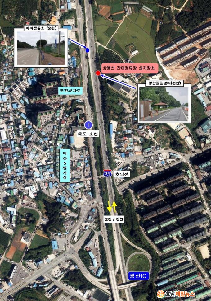 ¼³Ä¡Àå¼Ò´Â ±¤»êIC¿Í ºÏ±¤»êIC Áß°£ÁöÁ¡¿¡ À§Ä¡Çϰí ÀÖÀ¸¸ç, ¹Ý´ëÆí¿¡´Â °í¼Óµµ·Î ÇÏÇ༱ ºñ¾ÆÁ¤·ùÀåÀÌ ÀÖ¾î ÁöÇÏ¿¬°áÅë·Î¸¦ ÅëÇØ À̵¿ÀÌ °¡´ÉÇÏ´Ù.