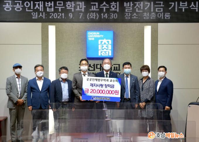 Áö³ 7ÀÏ ¿ÀÈÄ 2½Ã 30ºÐ Á¶¼±´ëÇб³ º»°ü 2Ãþ ûÃâ¾î·ë½Ç¿¡¼ ¿¸° ±âºÎ½ÄÀº Àü¹®¹ýÁ¶Àΰú »çȸ°¢°èÀÇ °øÁ÷ÀÚ ¾ç¼ºÀ» À§ÇØ °ø°øÀÎÀç¹ý¹«Çаú ±³¼öȸ°¡ 2000¸¸¿øÀÇ ÀåÇбÝÀ» Á¶¼º, ±âºÎ½ÄÀ» ÁøÇàÇß´Ù.