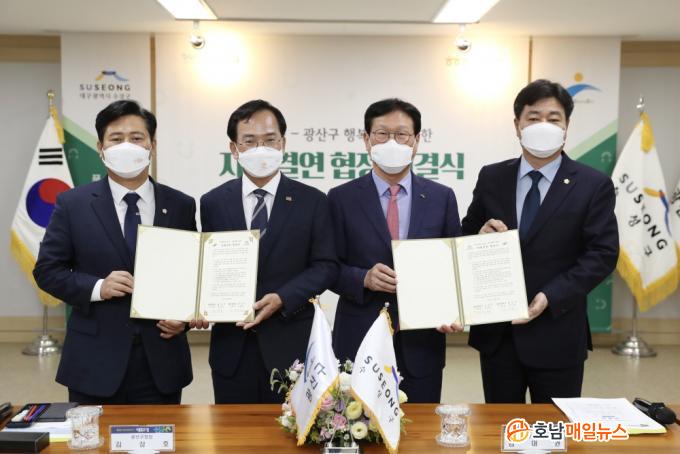 ±¤»ê±¸´Â 9ÀÏ ´ë±¸ ¼ö¼º±¸¸¦ ¹æ¹®ÇÏ¿© ¡®Çູµ¿¸Í ÀڸŰῬ¡¯ Çù¾à½ÄÀ» °¡Á³´Ù. Áö¿ª»ó»ý ÆÄÆ®³Ê·Î¼ ù¹ßÀ» ³»µðµò °ÍÀ¸·Î, À̹ø Çù¾àÀ¸·Î ¾ç ±â°üÀº ±¤»ê±¸¿Í ¼ö¼º±¸ ÁֹΠÇູ°ú »óÈ£ ¹ßÀüÀ» À§ÇÑ Çù·Â ü°è¸¦ ±¸ÃàÇÑ´Ù.