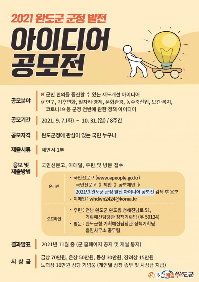 ¿ì¼ö ¾ÆÀ̵ð¾î·Î ¼±Á¤µÇ¸é »óÀå°ú ½Ã»ó±Ý(±Ý»ó 70¸¸ ¿ø, Àº»ó 50¸¸ ¿ø, µ¿»ó 30¸¸ ¿ø, Àå·Á 15¸¸ ¿ø)À» Áö±ÞÇÒ °èȹÀÌ´Ù.