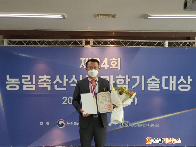 Àü³²´ë ÀÌ»óÇö ±³¼ö(¿ø¿¹»ý¸í°øÇаú)´Â ICTÀ¶º¹ÇÕ±â¼úÀ» ÀÌ¿ëÇÑ ±¹»ê²É°¡·ç ÀÚ±ÞÈ ¹× ÀΰøÁö´ÉÀ» ÀÌ¿ëÇÑ ²É°¡·ç Ȱ·Â½Å¼Ó°ËÁ¤±â¼ú µîÀ» ÇöÀå¿¡ Àû¿ëÇØ °íǰÁú ¹è »ý»êÀº ¹°·Ð Çѱ¹ ¹èÀÇ ±¹Á¦Àû À§»ó Á¦°í¿¡ ±â¿©ÇÑ °ø·Î¸¦ ÀÎÁ¤¹Þ¾Æ Áö³ 9¿ù 8ÀÏ ¿¸° ¡®Á¦24ȸ 2021 ³ó¸²Ãà»ê½Äǰ°úÇбâ¼ú´ë»ó¡¯¿¡¼ ´ëÅë·É ǥâÀ» ¼ö»óÇß´Ù.