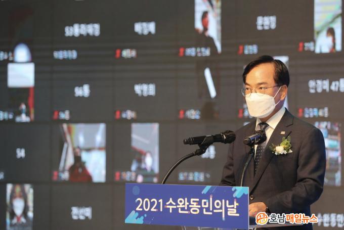 ¹Ú´ë±Ô ¼ö¿Ïµ¿ÀåÀº ¡°Äڷγª19·Î Èûµç »óȲ¿¡¼µµ ¼ö¿Ïµ¿ ¹ßÀüÀ» À§ÇØ ³ë·ÂÇØ ÁØ Áֹε鿡 °¨»çÇÏ´Ù¡±¸ç ¡°Àα¸ 8¸¸ ´ëµ¿¿¡ °É¸ÂÀº ÁÖ¹ÎÀÚÄ¡¸¦ ±¸ÇöÇϱâ À§ÇØ ¾ÕÀ¸·Îµµ ÃÖ¼±À» ´ÙÇϰڴ١±°í ¸»Çß´Ù.