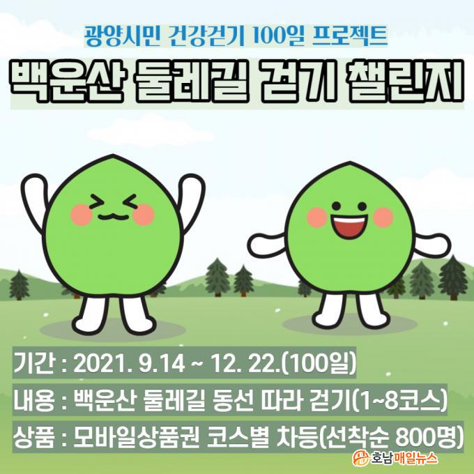 GPS ½ÅÈ£¸¦ ±â¹ÝÀ¸·Î ±¤¾çÀÇ ¸í»ê ¹é¿î»ê µÑ·¹±æ 1~8ÄÚ½º Áß °È±âÁÁÀº±æ ÀϺθ¦ ÁöÁ¤ÇÏ¿© 9¿ù 14ÀϺÎÅÍ 12¿ù 22ÀϱîÁö 100ÀÏ µ¿¾È ÁøÇàµÇ¸ç, Á¤ÇØÁø ±¸°£ 80% ÀÌ»ó °È°í ÄíÆù ¡®¹Þ±â¡¯¸¦ ´©¸£¸é ¼±¹°ÇÔ¿¡ ÄíÆùÀÌ ÀÚµ¿ ¹ß±ÞµÇ´Â °È±â À̺¥Æ®ÀÌ´Ù.