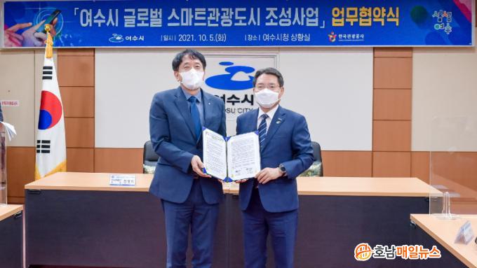 Áö³ 5ÀÏ ±Ç¿ÀºÀ ¿©¼ö½ÃÀå°ú Çѱ¹°ü±¤°ø»ç ¾È¿µ¹è »çÀåÀÌ ½ÃÀå½Ç¿¡¼ ¡®½º¸¶Æ® °ü±¤µµ½Ã Á¶¼º»ç¾÷¡¯ÀÇ ¼º°øÀûÀÎ ÃßÁøÀ» À§ÇØ ¾÷¹«Çù¾àÀ» ü°áÇß´Ù.