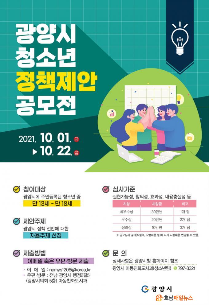Á¢¼ö±â°£Àº 10¿ù 1~22ÀÏÀ̸ç, ÁÖÁ¦´Â ¡®Ã»¼Ò³âÀÌ ÇູÇÑ ±¤¾çÀ» ¸¸µé±â À§ÇÑ Á¤Ã¥¡¯À̶ó´Â ÀÚÀ²ÁÖÁ¦·Î º»ÀÎÀÌ Æò¼Ò ´À²¼´ø »çȸ¹®Á¦, û¼Ò³â Á¤Ã¥, ±¤¾ç½Ã¿¡ Á¦¾ÈÇÏ°í ½ÍÀº ³»¿ë µî ½Ã Á¤Ã¥ Àü¹Ý¿¡ ´ëÇÑ ÀǰßÀ» Á¦¾ÈÇÏ¸é µÈ´Ù.