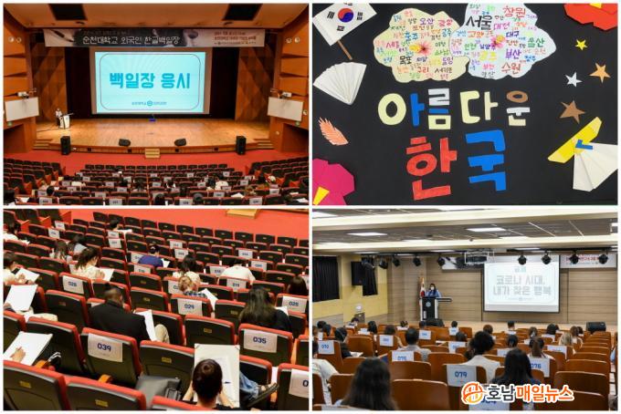 ¼øÃµ´ëÇб³°¡ ÁÖÃÖÇÏ°í ¼øÃµ½Ã°¡ ÈÄ¿øÇÑ À̹ø ¡®¿Ü±¹ÀÎ Çѱ۹éÀÏÀ塯Àº ¼øÃµ½Ã¿¡ °ÅÁÖ ÁßÀÎ 35°³±¹ Ãâ½Å ¿Ü±¹ÀÎ 120¿© ¸íÀÌ Âü°¡ÇÏ¿©, ¡®Äڷγª ½Ã´ë, ³»°¡ ãÀº Çູ¡¯À» ½ÃÁ¦·Î Æò¼Ò °¥°í ´ÛÀº ÇÑ±Û ½Ç·ÂÀ» °Ü·ç¾ú´Ù.