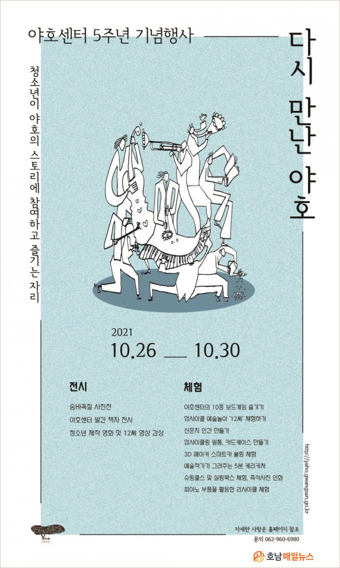 ¾ßÈ£¼¾ÅÍ´Â Áö³ 2016³â 11¿ù19ÀÏ °³°üÇÏ¿© Áö¿ª û¼Ò³âµéÀÇ Àι®¡¤¿¹¼ú ƯȽü³·Î ÀÚ¸®¸Å±èÇß´Ù. À̹ø Çà»ç´Â 5³â µ¿¾È ¾ßÈ£¼¾ÅͰ¡ ÁøÇàÇÑ È°µ¿À» ´Ù¾çÇÑ ÇÁ·Î±×·¥À¸·Î ±¸¼ºÇÏ¿© û¼Ò³â, ¸¶À»Áֹΰú ³ª´ ¼ö ÀÖµµ·Ï ÁغñÇß´Ù.