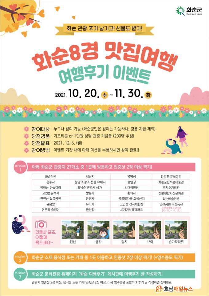 Âü¿© ¹æ¹ýÀº ȼø±º °ü±¤Áö 27°³¼Ò Áß 1°÷°ú ȼø À½½ÄÁ¡ ¶Ç´Â Ä«Æä 1°÷À» ¹æ¹® ÈÄ ¡ã¿µ¼öÁõ »çÁø 1Àå ¡ã¹æ¹® ÀÎÁõ »çÁø 2À徿À» ȼø±º ¹®È°ü±¤ ´©¸®Áý ¡®È¼ø ¿©ÇàÈı⡯ °Ô½ÃÆÇ¿¡ ¿Ã¸®¸é µÈ´Ù.