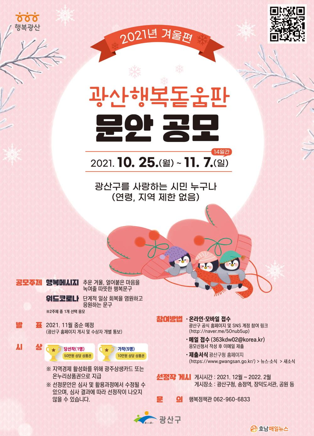 ÁÖÁ¦´Â Çູ¸Þ½ÃÁö¿Í À§µåÄڷγª(With Corona) µÎ °¡Áö, °ø¸ð ±â°£Àº 25ÀϺÎÅÍ 11¿ù7ÀϱîÁö´Ù. Ãß¿î °Ü¿ï, ¾ó¾îºÙÀº ¸¶À½À» ³ì¿©ÁÙ µû¶æÇÑ Çູ¹®±¸³ª ´Ü°èÀû ÀÏ»ó ȸº¹À» ¿°¿øÇϰí ÀÀ¿øÇÏ´Â ¹®±¸ Áß Çϳª¸¦ ¼±ÅÃÇÏ¿© Âü¿©ÇÏ¸é µÈ´Ù.