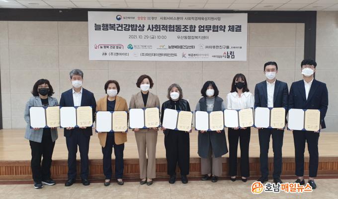 29ÀÏ ±¤»ê±¸¿¡ µû¸£¸é, ´ÃÇູ°Ç°¹ä»ó »çȸÀûÇùµ¿Á¶ÇÕÀº À̳¯ ¿ì»êµ¿ ÇàÁ¤º¹Áö¼¾ÅÍ 3Ãþ °´ç¿¡¼ ±¤»ê±¸ÀÚ¿øºÀ»ç¼¾ÅÍ, ´ÃÇູ¸¶À»°Ç°¼¾ÅÍ(±¤ÁÖÀÇ·á»çÇù), »çȸÀûÇùµ¿Á¶ÇÕ »ì¸² µî 7°³ ±â°ü°ú ¸¶À»º¹Áö°øµ¿Ã¼¸¦ °ÈÇϱâ À§ÇÑ ¾÷¹«Çù¾àÀ» ü°áÇß´Ù.