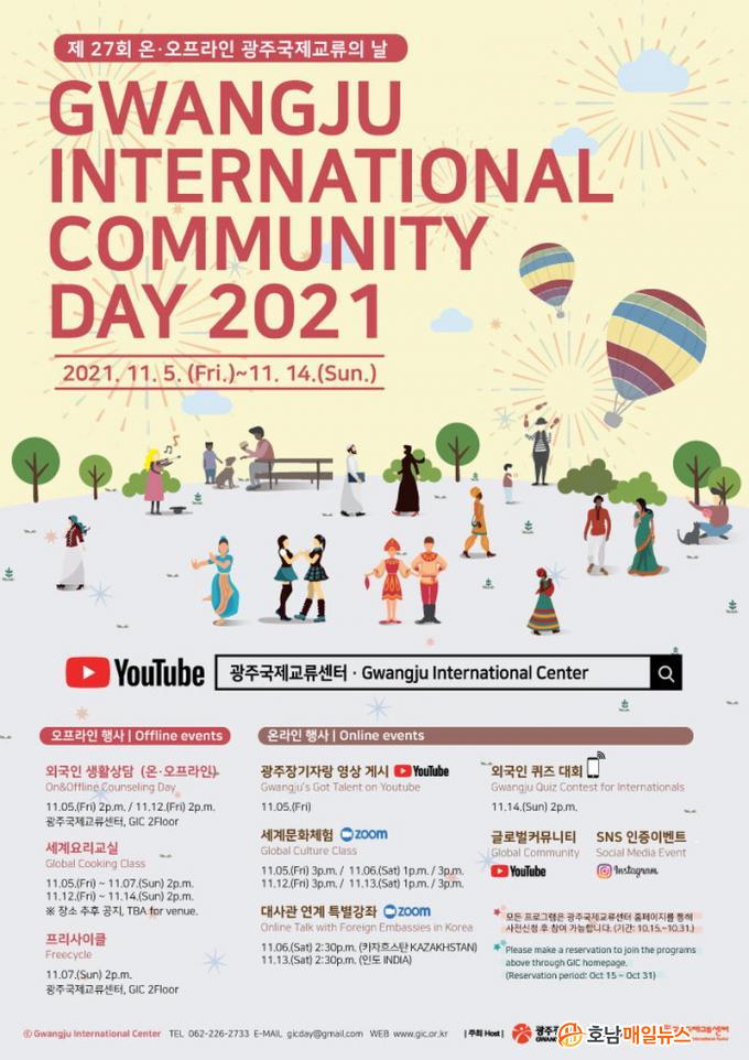 ¸ðµç ÇÁ·Î±×·¥Àº ±¤ÁÖ±¹Á¦±³·ù¼¾ÅÍ È¨ÆäÀÌÁö¿¡¼ »çÀüµî·ÏÀ» ÅëÇØ ¹«·á·Î Âü¿©ÇÒ ¼ö ÀÖ´Ù. ÀÚ¼¼ÇÑ ³»¿ëÀº ±¤ÁÖ±¹Á¦±³·ù¼¾ÅÍ(062-226-2732)·Î ¹®ÀÇÇϰųª ±¤ÁÖ±¹Á¦±³·ù¼¾ÅÍ È¨ÆäÀÌÁö¿¡¼ È®ÀÎÇÏ¸é µÈ´Ù.