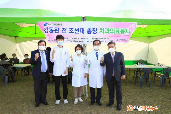 ÀÇ·á Àåºñ°¡ ¼³Ä¡µÈ Â÷·®À» ÀÌ¿ëÇÑ À̳¯ ÀÇ·á ºÀ»ç¿¡ Ä¡°úÀÇ»ç 3¸í, ÀÚ¿øºÀ»çÀÚ µîÀÌ Âü¿©Çß´Ù. Æò¼Ò Ä¡¾Æ °ü¸®¿Í Ä¡·á¸¦ À§ÇØ Ä¡°ú ¹æ¹®¿¡ ¾î·Á¿òÀÌ ÀÖ¾ú´ø ¾î¸£½Å°ú °Åµ¿ÀÌ ºÒÆíÇÑ Àå¾ÖÀε鿡°Ô Å« È£ÀÀÀ» ¾ò¾ú´Ù.