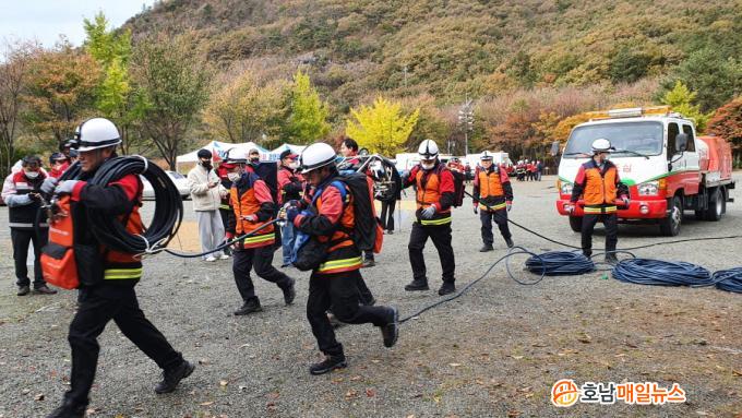 ÇØ³² Èæ¼®»êÀÚ¿¬È޾縲¿¡¼ ¿¸° À̹ø Áö»óÁøÈ °æ¿¬´ëȸ´Â ¾ß°£»êºÒÀ» °¡»óÇØ »êºÒ Áö»ó ÁøÈ ´É·Â Çâ»óÀ» À§ÇØ ÁøÇàÇß´Ù. »êºÒ ¹ß»ý ½Ã ÃÖÀü¼±¿¡¼ ÁøÈÇÏ´Â µµ³» 11°³ ½Ã±º »êºÒ °ü°è °ø¹«¿ø°ú »êºÒ ¿¹¹æ Àü¹® ÁøÈ´ë¿ø 90¿© ¸íÀÌ Âü°¡Çß´Ù.