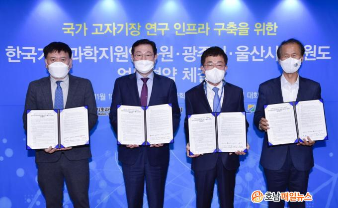 À̹ø Çù¾àÀº Á¤ºÎÃ⿬ ¿¬±¸±â°üÀÎ KBSI¿Í 3°³ ÁöÀÚüÀÎ ±¤ÁÖ½Ã, ¿ï»ê½Ã, °¿øµµ°¡ ±×µ¿¾È °³º°ÀûÀ¸·Î ÃßÁø ÁßÀÌ´ø °íÀÚ±âÀå ¿¬±¸ ÀÎÇÁ¶ó¸¦ ü°èÀûÀ̰í, Áߺ¹¾øÀÌ È¿À²ÀûÀ¸·Î ±¸ÃàÇϱâ À§ÇØ ÁøÇàµÆÀ¸¸ç, °íÀÚ±âÀå ¿¬±¸°³¹ß ±â¹Ý½Ã¼³ ±¸Ãà, ¿¬°ü»ê¾÷ À°¼º, Áö¿ª ±ÕÇü¹ßÀüÀ̶ó´Â ¼¼ ¸¶¸®ÀÇ Åä³¢¸¦ Àâ±â À§ÇÑ Çù·ÂüÁ¦ ±¸Ãà¿¡ ³ª¼¹´Ù´Â Á¡¿¡¼ Å« Àǹ̸¦ °®´Â´Ù.