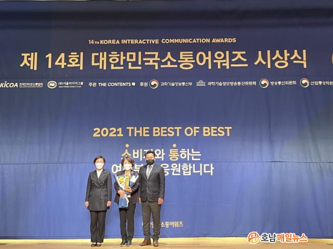 (»ç)Çѱ¹¼Ò¼ÈÄÜÅÙÃ÷ÁøÈïÇùȸ ÁÖ°ü Á¦7ȸ ¿ÃÇØÀÇ SNS¾î¿öÁî¿¡¼± ÇØ¿Ü SNSä³Î ¡®¿þÀ̺¸¡¯ Àü³²°ü±¤ °èÁ¤ÀÌ SNS °ü±¤ºÎ¹® ¡®¿ÃÇØÀÇ ¿þÀ̺¸ ´ë»ó¡¯À» ¼ö»óÇß´Ù.