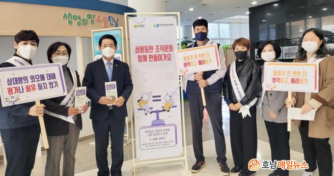 ±èÁ¾ºÐ Àü³²µµ ¿©¼º°¡Á·Á¤Ã¥°üÀº ¡°Á÷Àå ³» ¼ºÆòµîÇÑ Á¶Á÷¹®È¸¦ Á¤ÂøÇϱâ À§Çؼ´Â ¸ðµç Á÷¿øÀÌ ÇÔ²² ³ë·ÂÇÒ Çʿ䰡 ÀÖ´Ù¡±¸ç ¡°Á÷Àå³» ¼ºÀÎÁö °¨¼ö¼ºÀ» ³ôÀ̰í, ÆòµîÇÑ °øÁ÷¹®È°¡ Á¤ÂøµÇµµ·Ï ±³À°°ú È«º¸¸¦ Áö¼ÓÇϰڴ١±°í ¸»Çß´Ù.